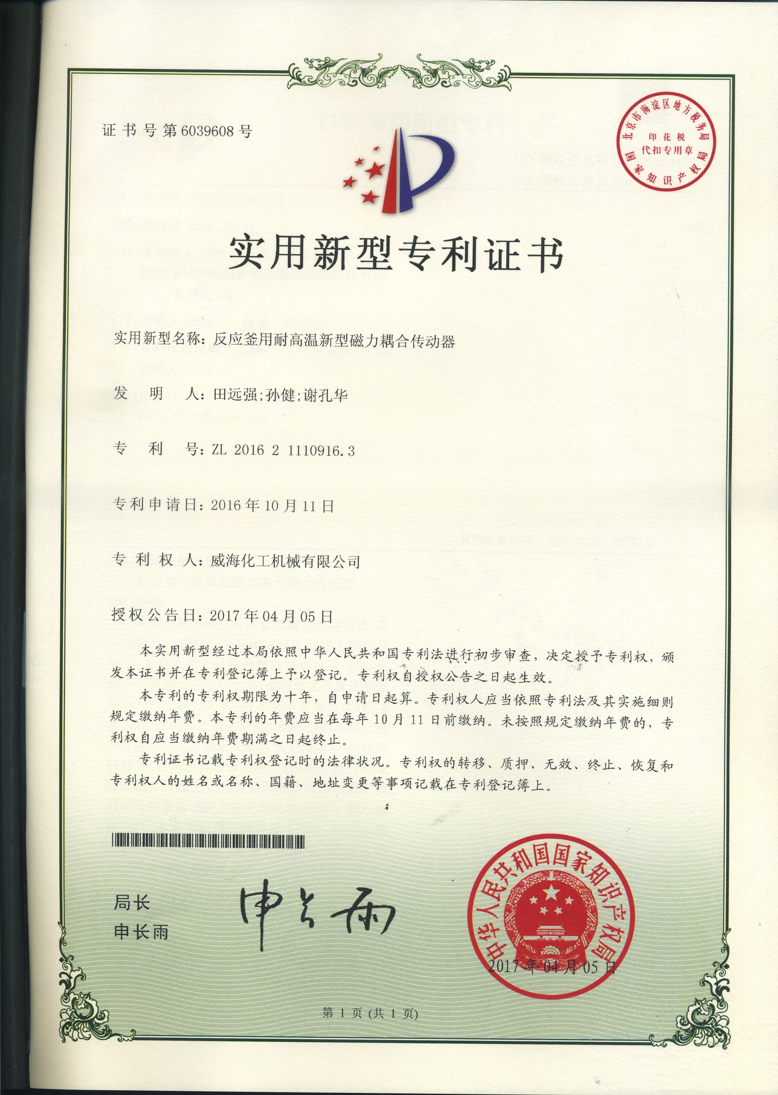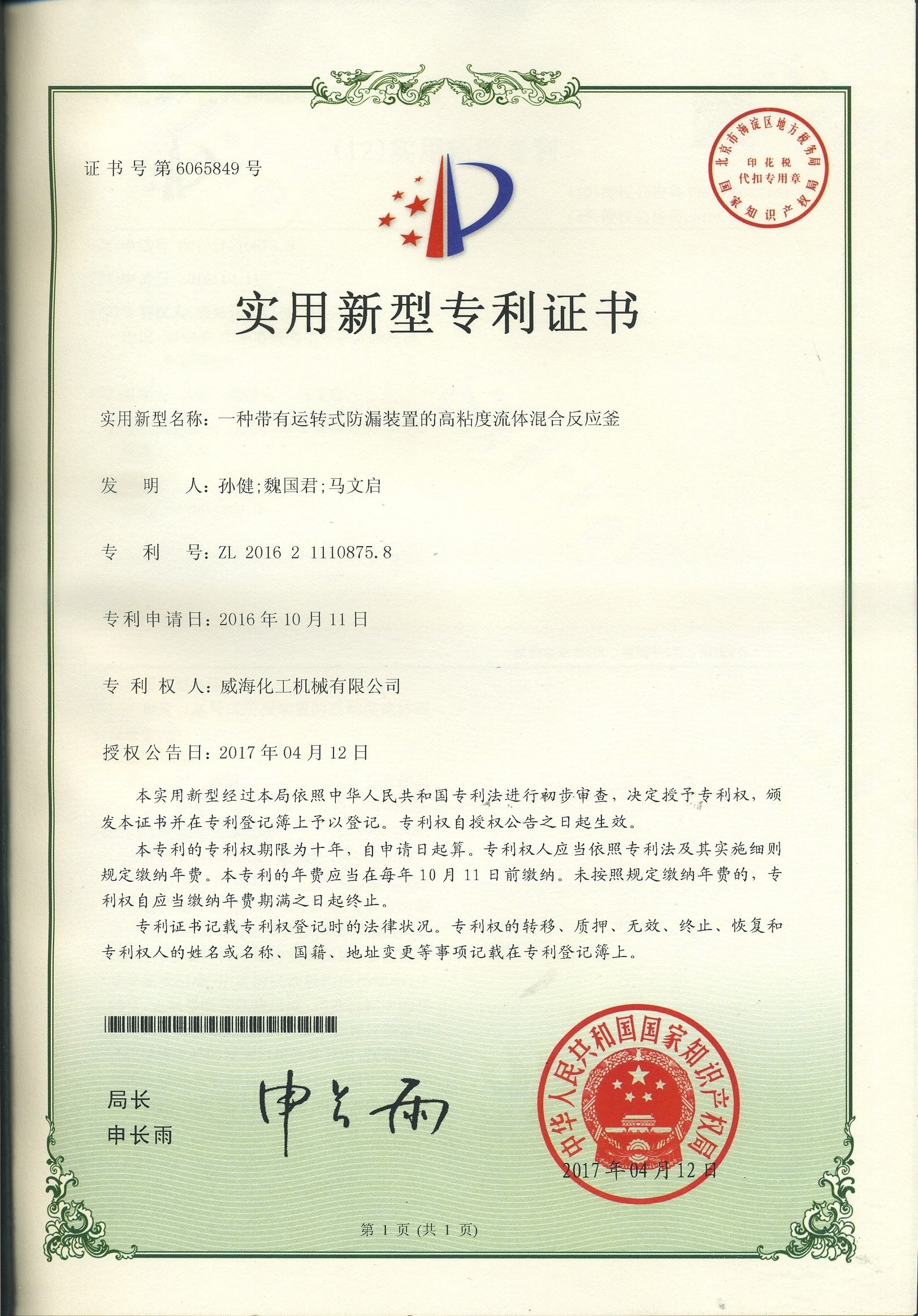 公司建有磁力驅(qū)動(dòng)測(cè)試試驗(yàn)室、攪拌模擬試驗(yàn)室、反應(yīng)釜流體混合攪拌重點(diǎn)實(shí)驗(yàn)室等,科研力量雄厚。截至2024年,公司共承擔(dān)近280項(xiàng)自主/合作開(kāi)發(fā)任務(wù),先后承擔(dān)省級(jí)新產(chǎn)品開(kāi)發(fā)任務(wù)25項(xiàng),其中23項(xiàng)產(chǎn)品已達(dá)到國(guó)內(nèi)水平。獲得各類省、市級(jí)技術(shù)創(chuàng)新獎(jiǎng)30余項(xiàng);參與起草、修訂標(biāo)準(zhǔn)共8項(xiàng),GB/T30098-2013實(shí)驗(yàn)室用磁力驅(qū)動(dòng)反應(yīng)釜標(biāo)準(zhǔn)、HG/T3648-2011磁力驅(qū)動(dòng)反應(yīng)釜標(biāo)準(zhǔn)、GB/T29254-2012實(shí)驗(yàn)室反應(yīng)釜用控制器標(biāo)準(zhǔn)、NB/T47002.1~47002.4-2019壓力容器用復(fù)合板;已獲得授權(quán)專利95項(xiàng),其中發(fā)明專利19項(xiàng),實(shí)用新型專利69項(xiàng),外觀專利7項(xiàng);擁有專有技術(shù)和核心技術(shù)40余項(xiàng)。