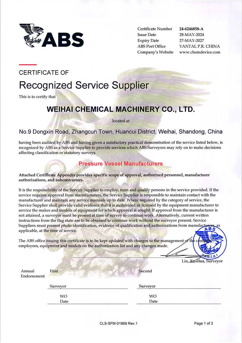 近日威海化工機(jī)械有限公司(以下簡(jiǎn)稱(chēng)“威?;瘷C(jī)”)壓力容器產(chǎn)品成功獲得了美國(guó)船級(jí)社(ABS)頒發(fā)的權(quán)威認(rèn)證,是繼復(fù)合板產(chǎn)品ABS認(rèn)證后拿到第二張ABS證書(shū),這標(biāo)志…